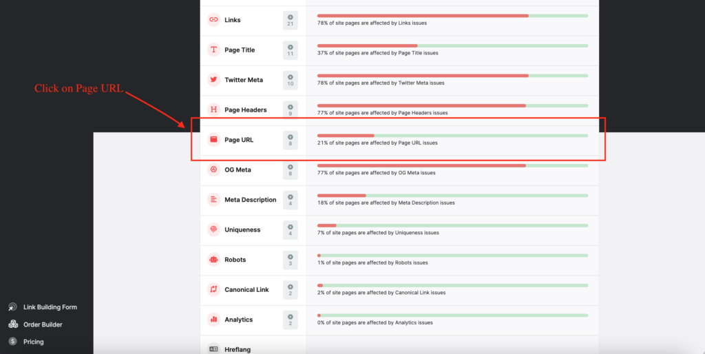 Click on the “Page URL” category.